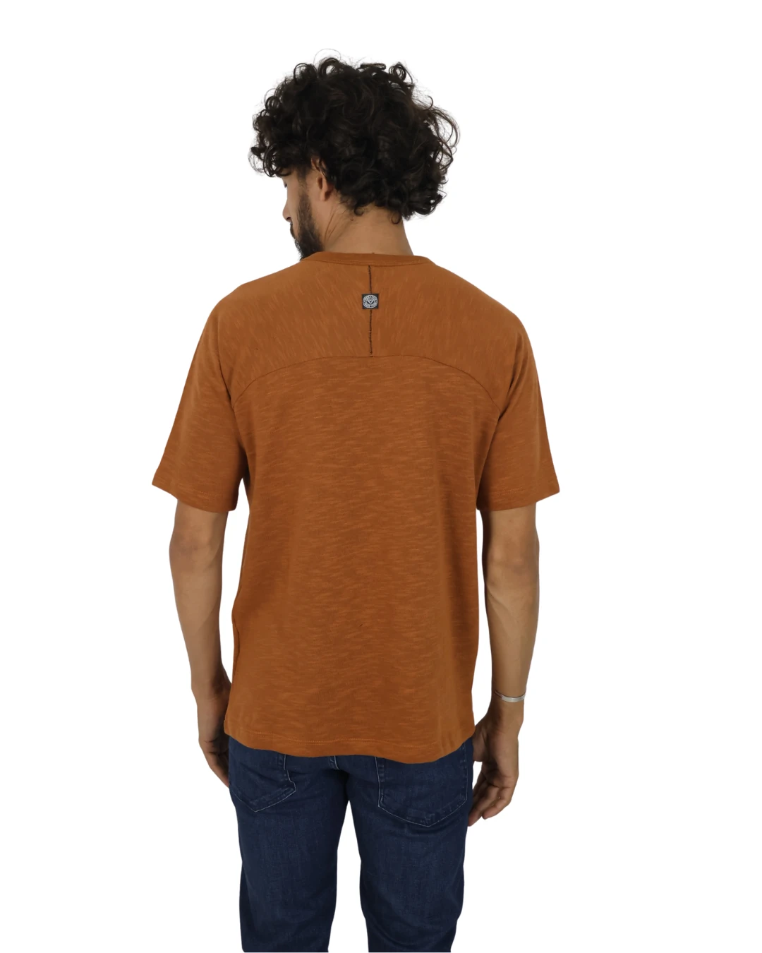 CAMISETA DIFERENCIADA COM RECORTES NA GOLA E COSTAS, MODELAGEM MAIS SOLTA E PONTO CONTRASTE COM ETIQUETA ATRAS. MALHA TIPO TRICÔ LEVE, E FRESCA.