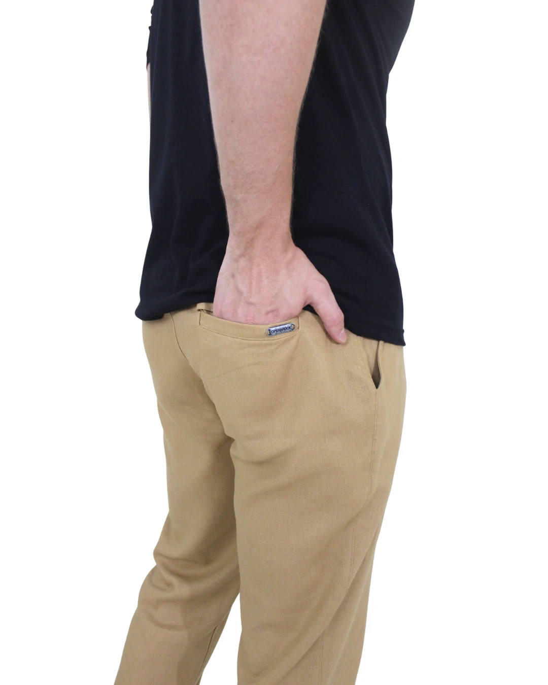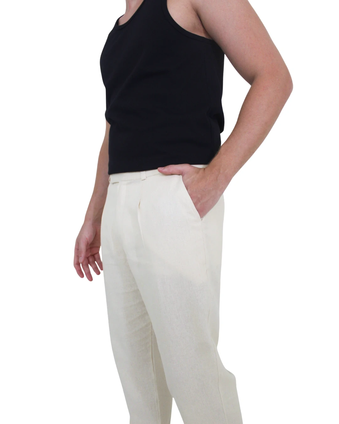 Calça alfaiataria, passante transpassado, cheia de detalhes que enriquecem a peça como, cadarço operado interno e aviamentos personalizados. A aparência rústica do linho, com a leveza da viscose. Composição: 45% viscose / 55% linho