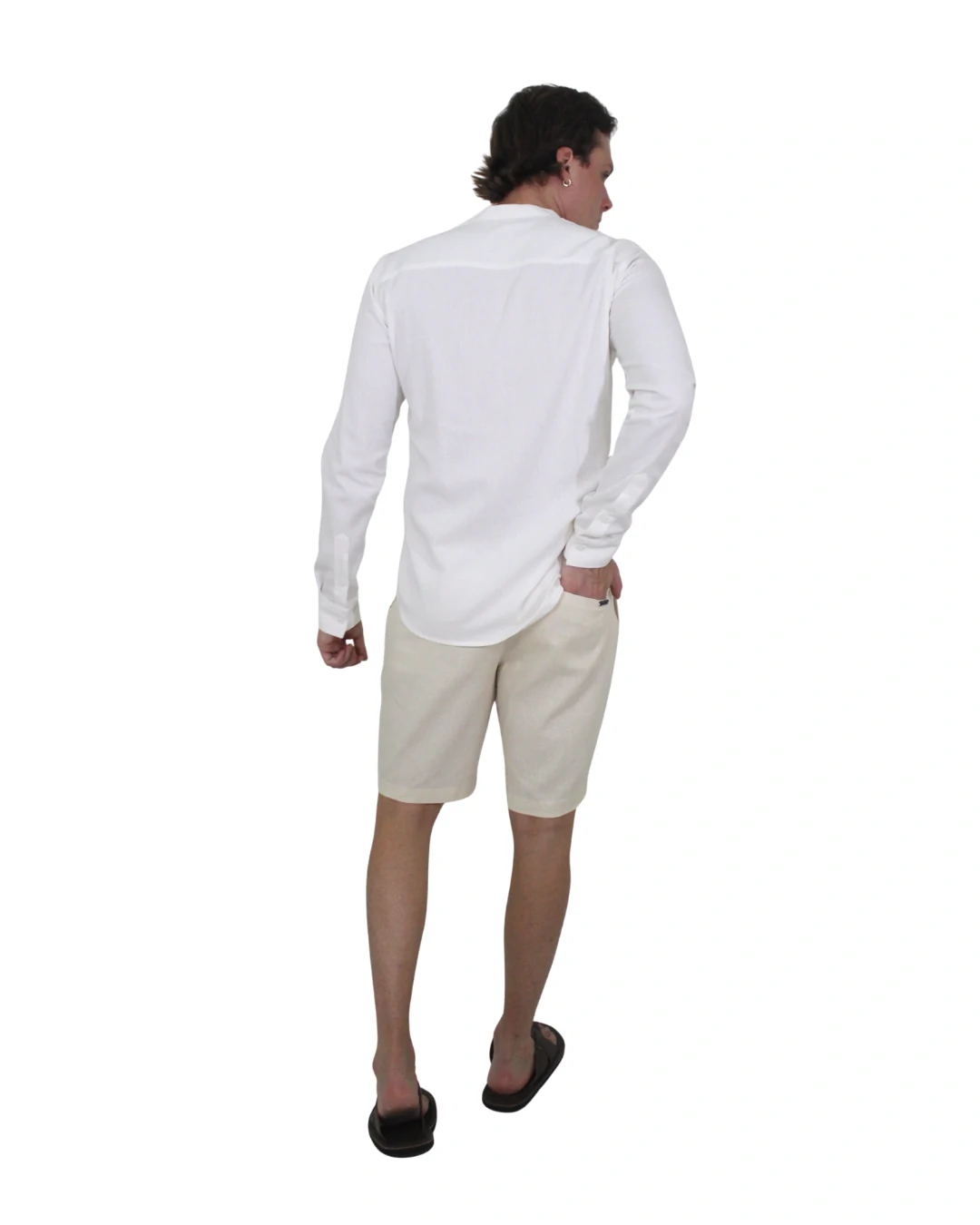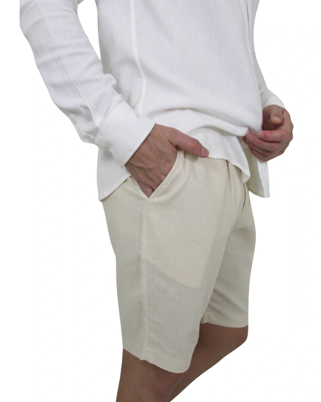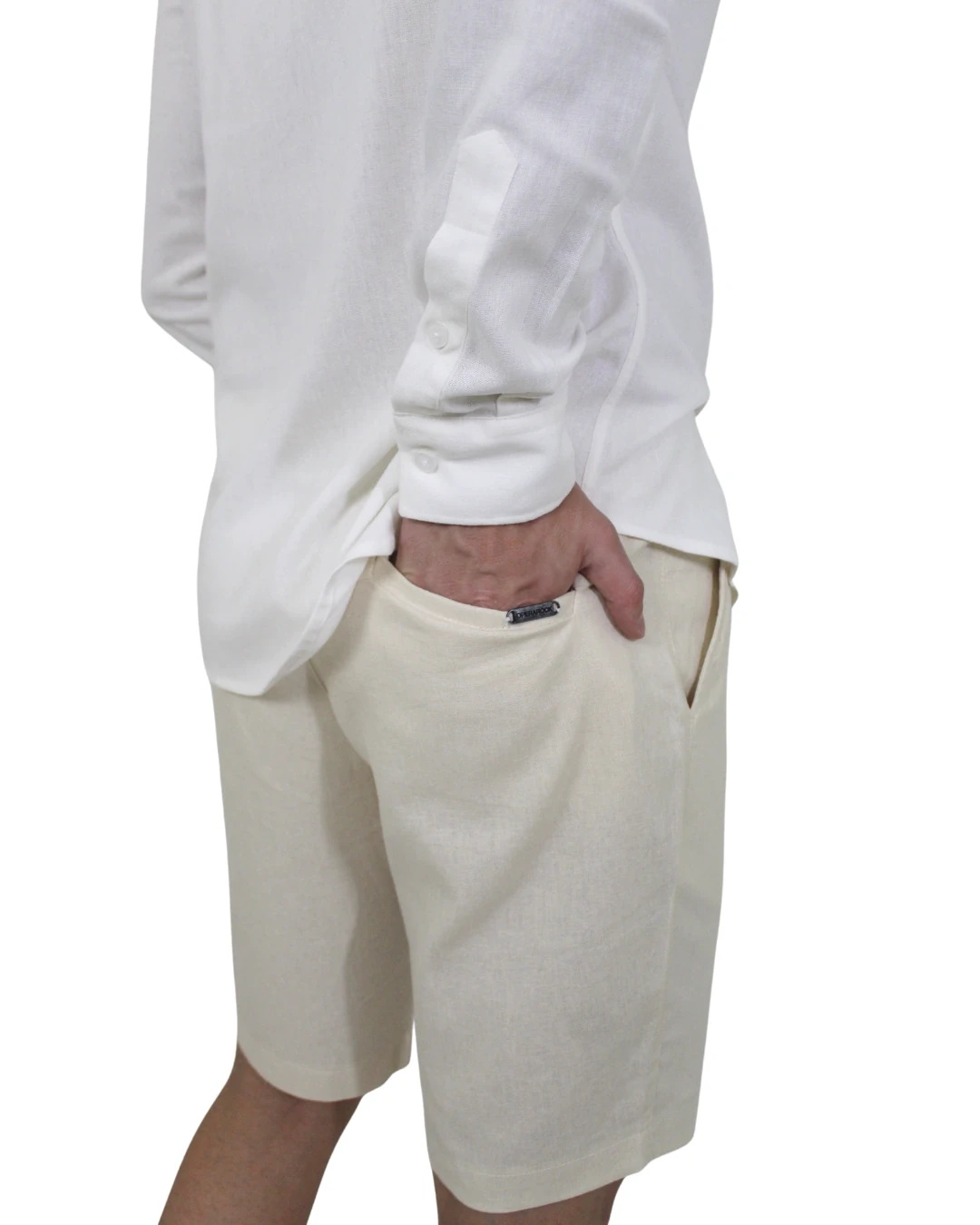 BERMUDA AFAIATARIA , PASSANTE TRANSPASSADO , CHEIA DE DETALHES , QUE ENRRIQUECE A PEÇA COMO , CADARÇO OPERAROCK INTERNO E AVIAMENTOS PERSONALIZADOS. A APARENCIA RUSTICA DO LINHO , COM A LEVAEZA DA VISCOSE - COMPOSIÇÃO: 45% VISCOSE/ 55% LINHO