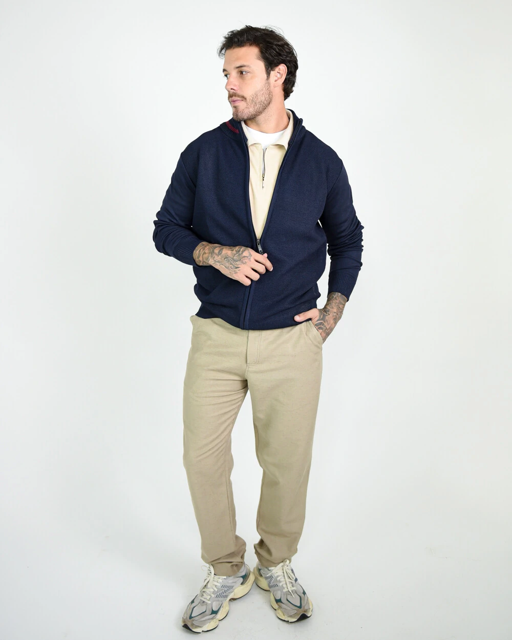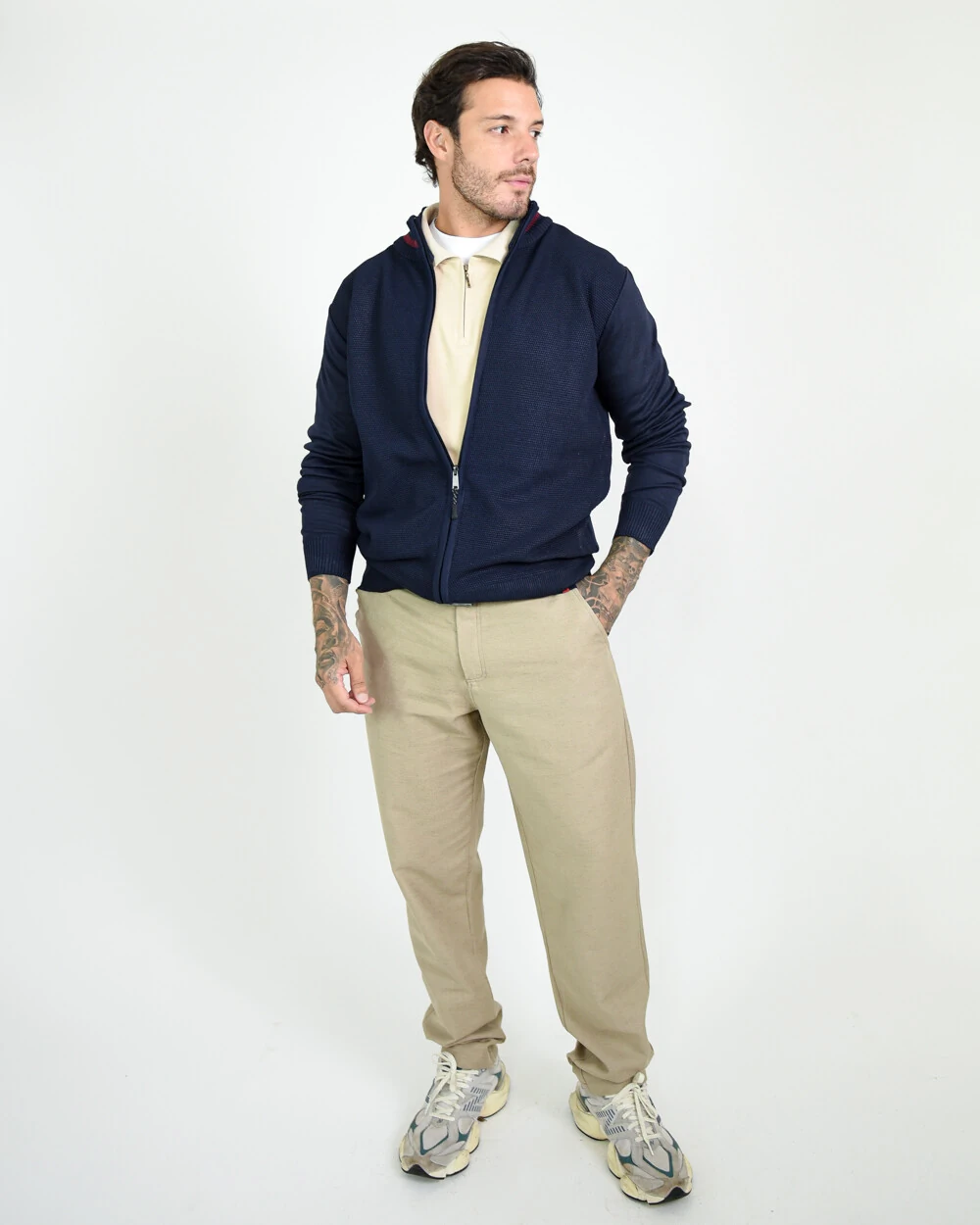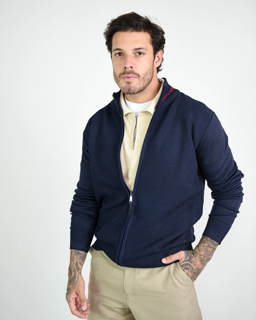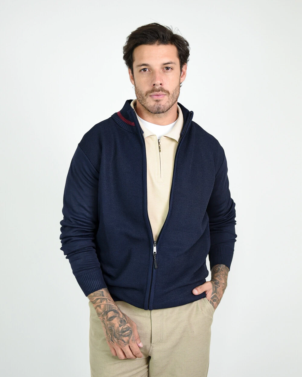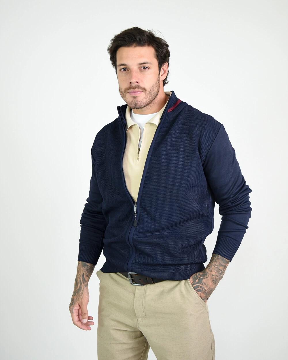 Cardigan masculino em tricot, com design contemporâneo e caimento confortável.